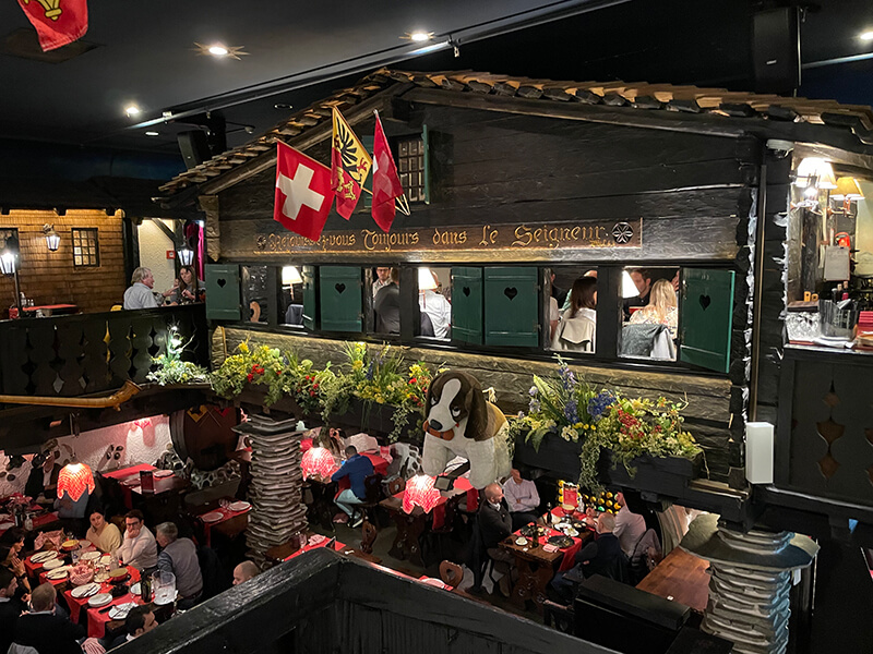 Finish up at a far-from-record pace and have just enough time to sit in the hot tub and steam room before heading out to a traditional Swiss restaurant for cheese and meat fondue!